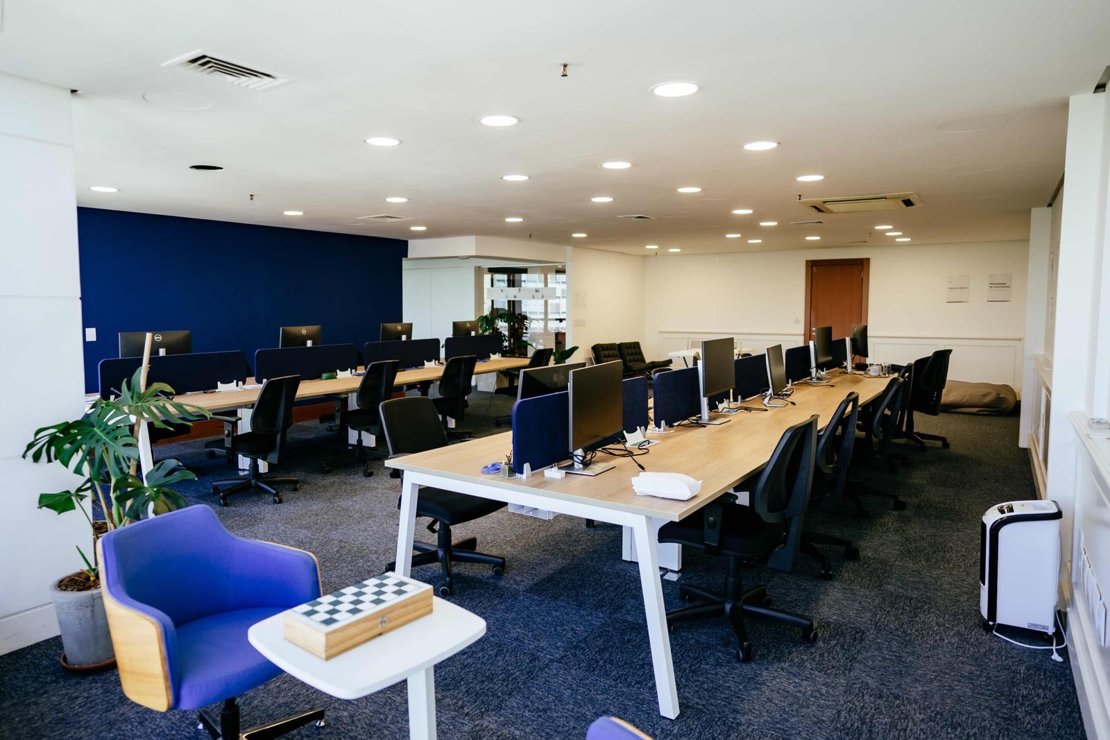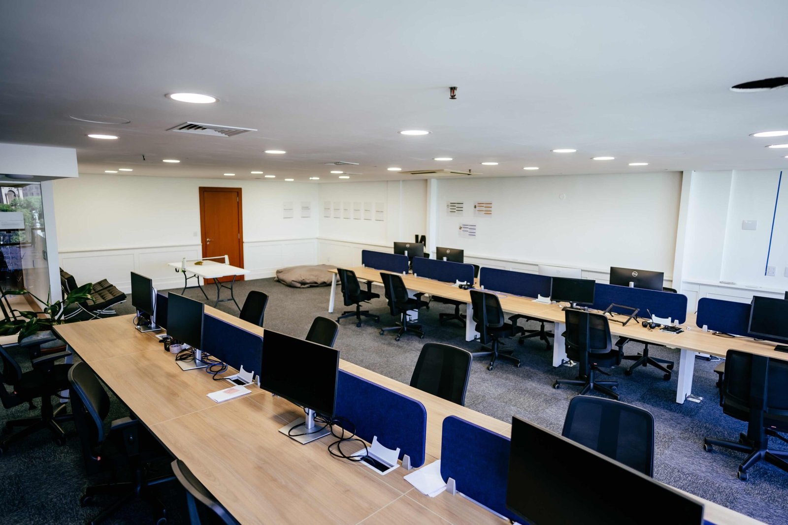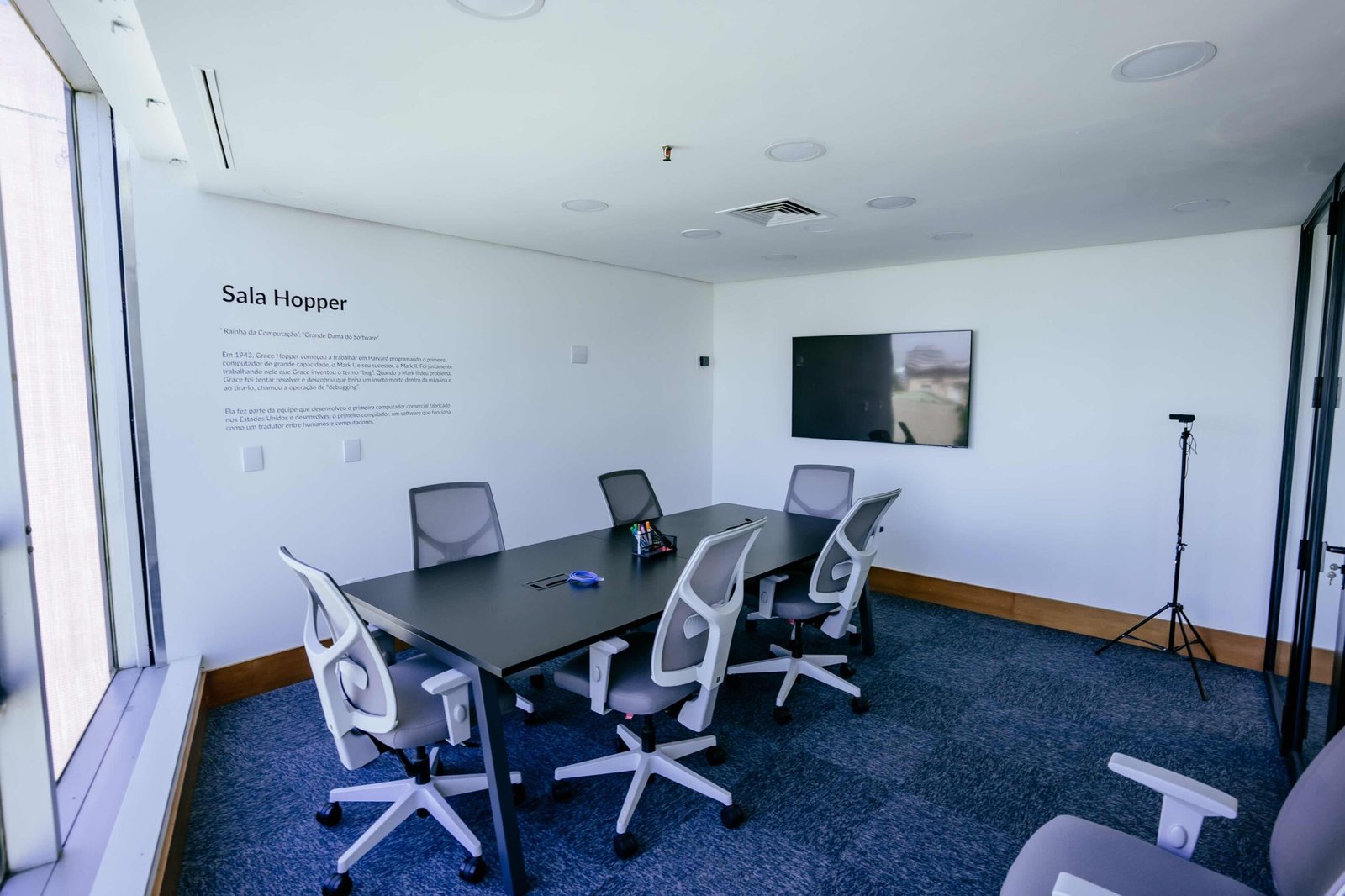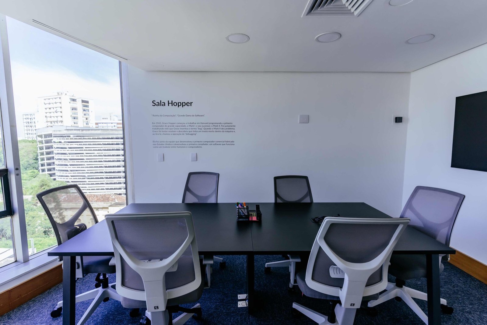 Divisórias com esquadrias pretas contemporâneas contrastando com os painéis existentes de madeira, carpete novo, muito espaço aberto, transparência, claridade e o toque certo de branding, junto com o mobiliário novo leve e moderno. Esses foram os ingredientes perfeitos para esse projeto corporativo muito especial.